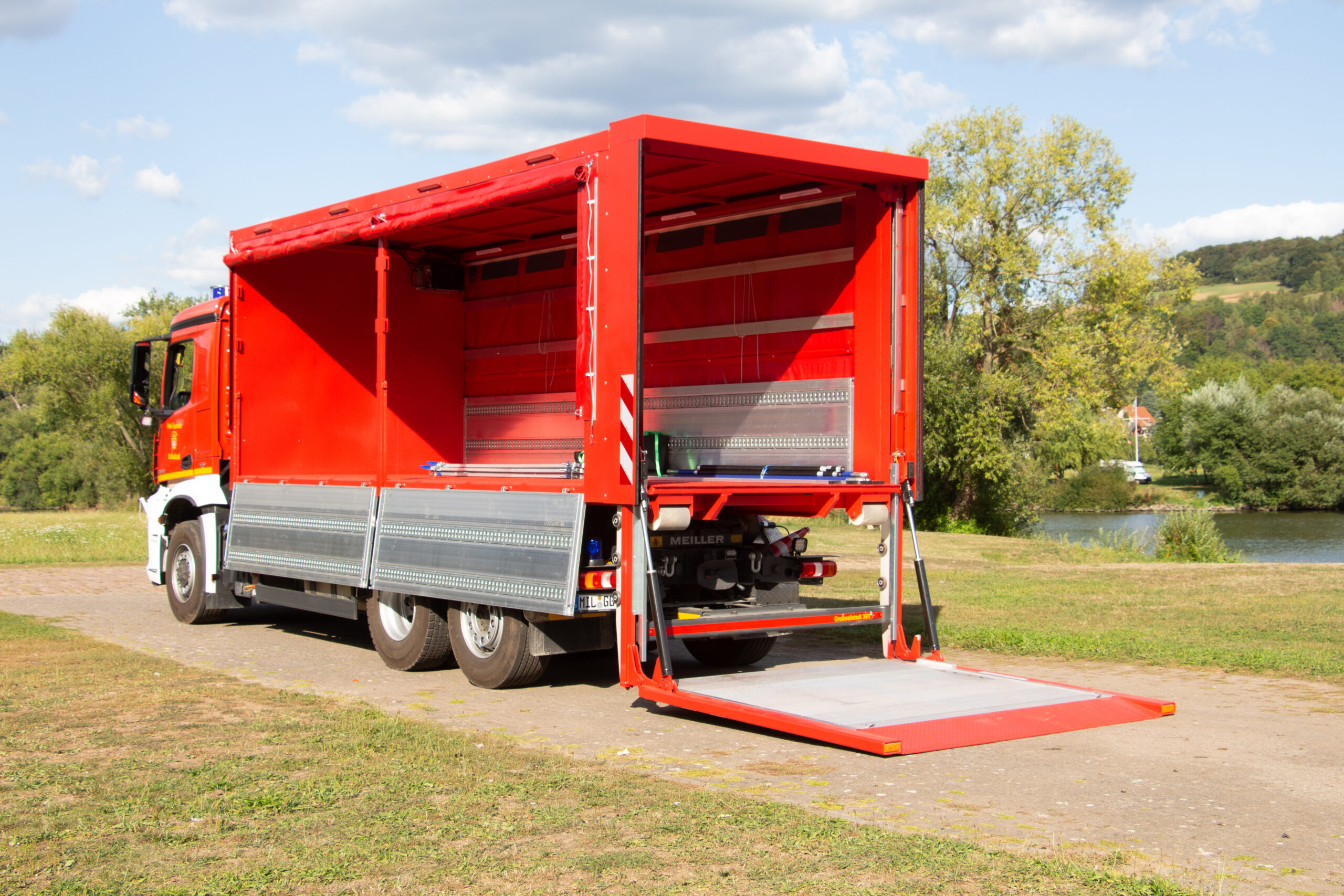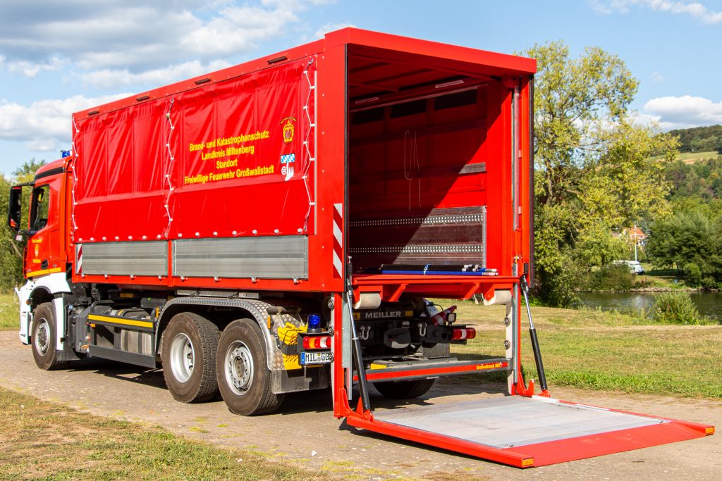AB-Aufenthalt Technische Daten:Fahrzeugtyp: Abrollbehälter-LogistikBaujahr: 2019Ausstattung: Säulen-Ladebordwand „Dhollandia“, Umfeldbeleuchtung, Innenraumbeleuchtung, Material zur Ladungssicherung