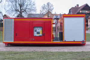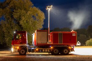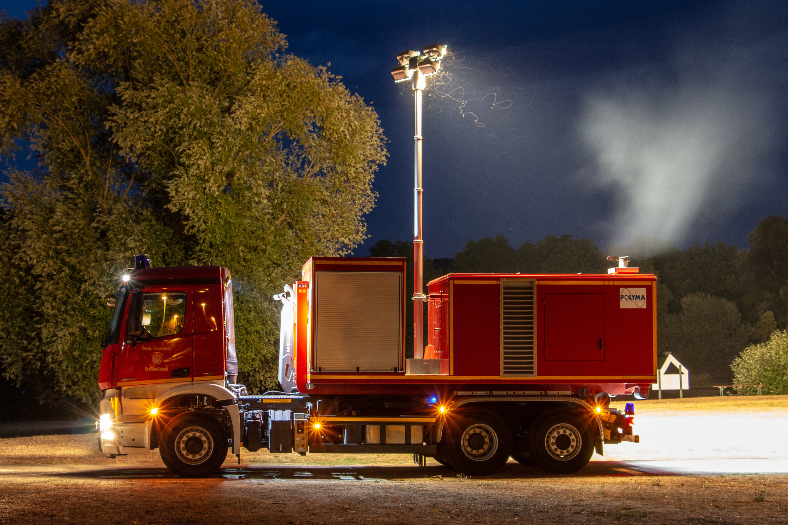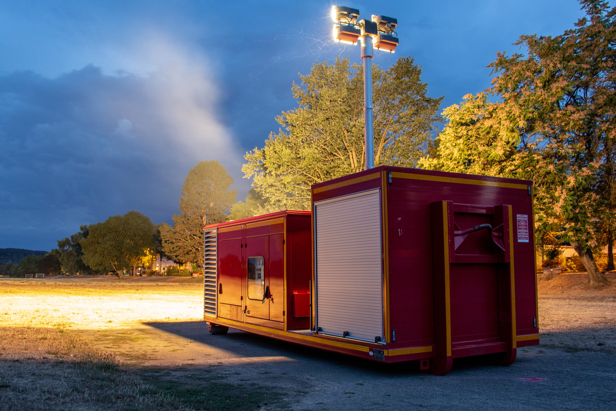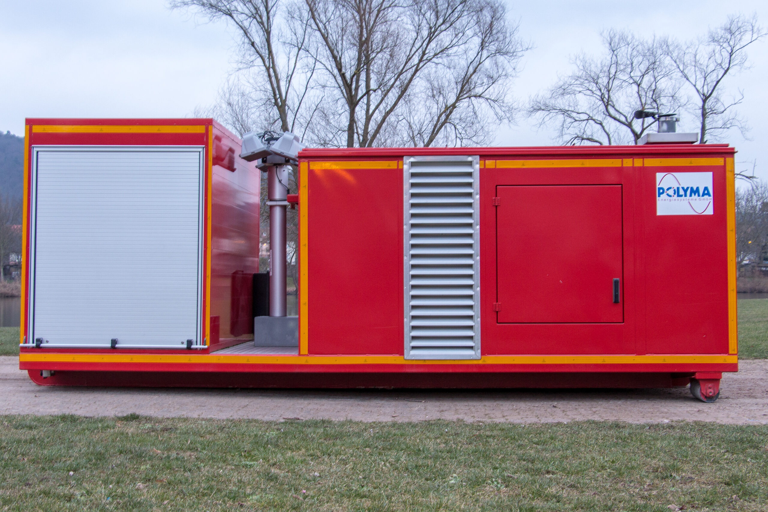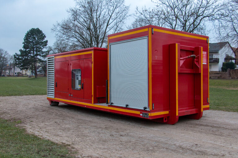 AB-Strom Technische Daten:Fahrzeugtyp: Abrollbehälter StromHersteller: Containerbau LübbenAufbau: PolymaBaujahr: 2013Ausstattung: Lichtmast, Generator 125 kVA, Feuerlöscher