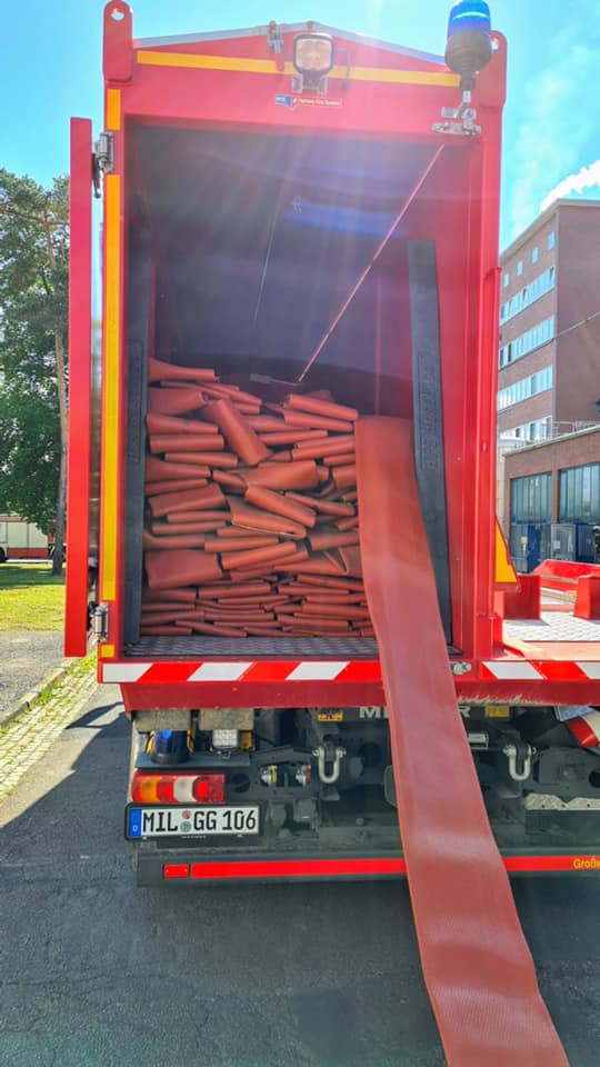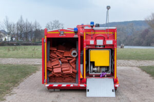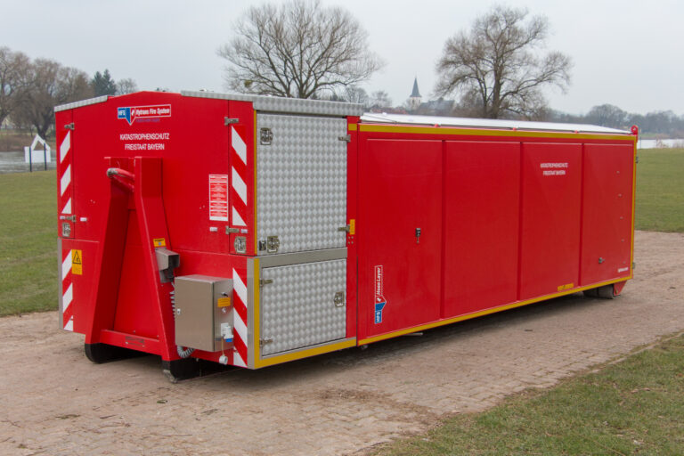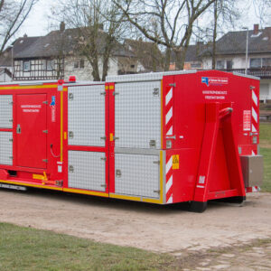 AB-Wasserförderung (HFS) Technische Daten:Fahrzeugtyp: Abrollbehälter WasserförderungHersteller: Hytrans Fire SystemsBaujahr: 2017Ausstattung: Hydraulisch angetriebene Kreiselpumpe „Hydro Sub 150“ Leistung: 204 PS 2000m F-Schlauch Verschiedene Armaturen Storz-F Wathosen Rettungswesten