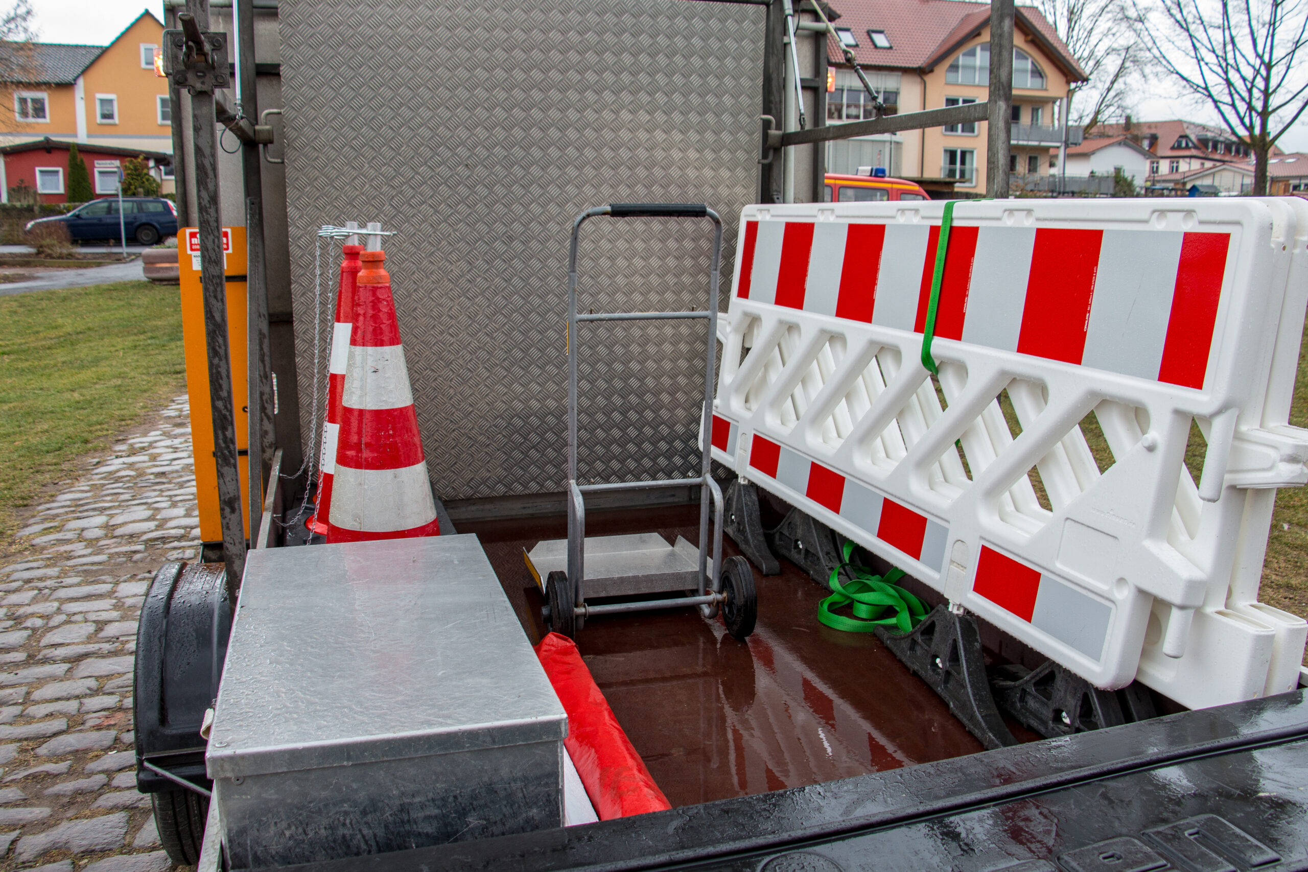 Verkehrssicherungsanhänger (Fw-VSA) Technische Daten:Fahrzeugtyp: Verkehrssicherungsanhänger VSAHersteller: A. Nissen AG Umbau: EigenumbauBaujahr:1996Ausstattung: Warntafel, Verkehrsleitkegel, Rollwagen, Warnbarken, Blitzleuchten